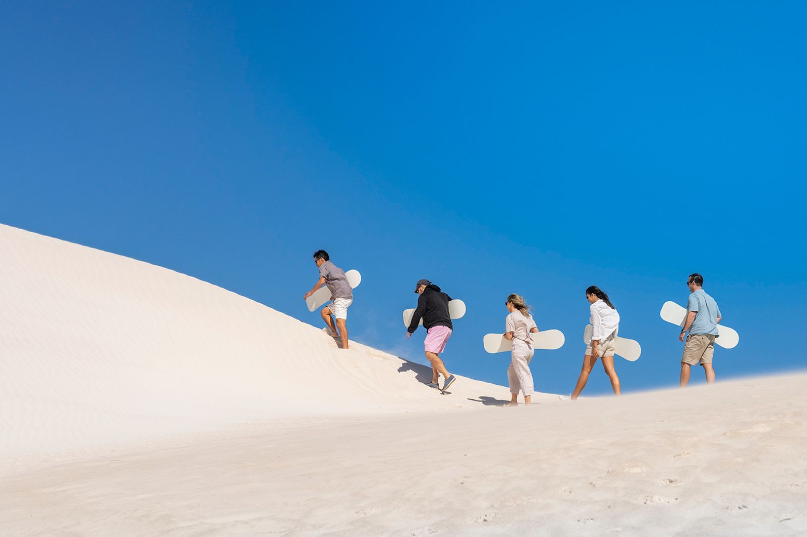 Được mệnh danh là một trong những đồi cát hoang sơ và đẹp nhất miền Trung, điều làm nên sự khác biệt của Quang Phú chính là sự thay đổi sắc thái của cát theo mặt trời: từ màu trắng tinh khôi dưới nắng sớm, chuyển sang vàng rực rỡ lúc chính ngọ và nhuốm đỏ kiêu sa khi hoàng hôn buông xuống. Đến đây, du khách không chỉ được đắm mình trong không gian bao la để lưu giữ những khung hình “độc bản”, mà còn có thể thử thách bản thân với trò chơi trượt cát đầy phấn khích.